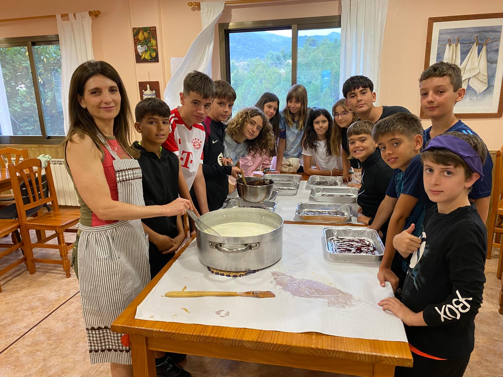 Així que cal canviar els plans ràpidament i el grup Lila fa una reestructuració de l’horari, mentre els vostres fills i filles fan els serveis generals. Els serveis generals son les tasques que cada dia fan els xiquets i xiquetes per a prendre cura de la colònia. Agranen, endrecen l’habitació, fan taller de cuina, fan el taller de tints de samarretes (avui li ha tocat al taronja), etc.