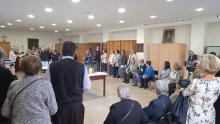 El diumenge 2 de novembre en acabar la missa de les onze, molt participada, vam celebrar a la sagristia major de Santa Maria la concessió de l'Honor Societat 2025 als voluntaris de Caritas.
