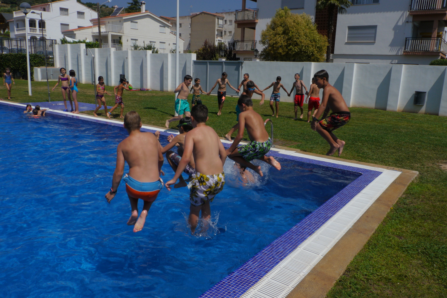 Després del dinar, amb entrepans de pernil i meló de postre, i del temps lliure posterior, tothom ha tornat a la colònia, on ens hem dutxat i engalanat en el Beauty Saloon per a la nit, ja que el grup Granat ens té preparat un ball com a vetlada.